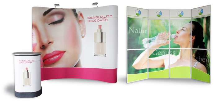 Faltwand- und PopUp-Systeme sind die idealen Werbeträger für den Veranstaltungs- und Promotionbereich. Die preiswerte Alternative zum konventionellen Messestand. Gepackt, sind sie in jedem Mittelklassewagen zu transportieren und von einer Person leicht auf- und abzubauen. Die Systeme sind durch den unkomplizierten Austausch der Grafik schnell aktualisierbar.